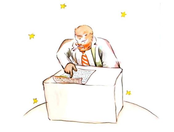 Fjórði hnötturinn var hnöttur kaupsýslumannsins. 🔊 Maðurinn var svo önnun kafinn að hann leit ekki einu sinni upp við komu litla prinsins. 🔊