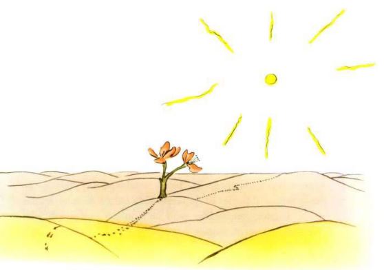 Litli prinsinn fór yfir eyðimörkina og hitti aðeins fyrir eitt blóm. 🔊 Blóm með þremur blöðum, örsmátt …